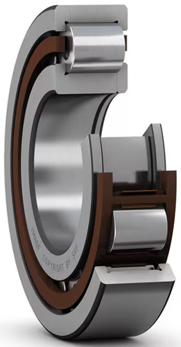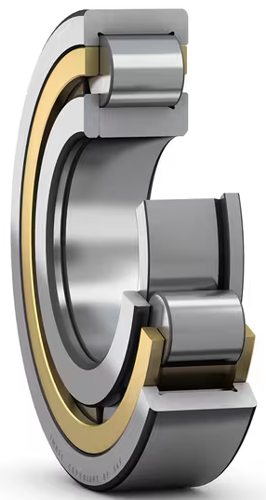rolamento NUP-1017 é um rolamento de rolos com uma carreira e flanges no anel externo e flange em um dos lados no anel interno